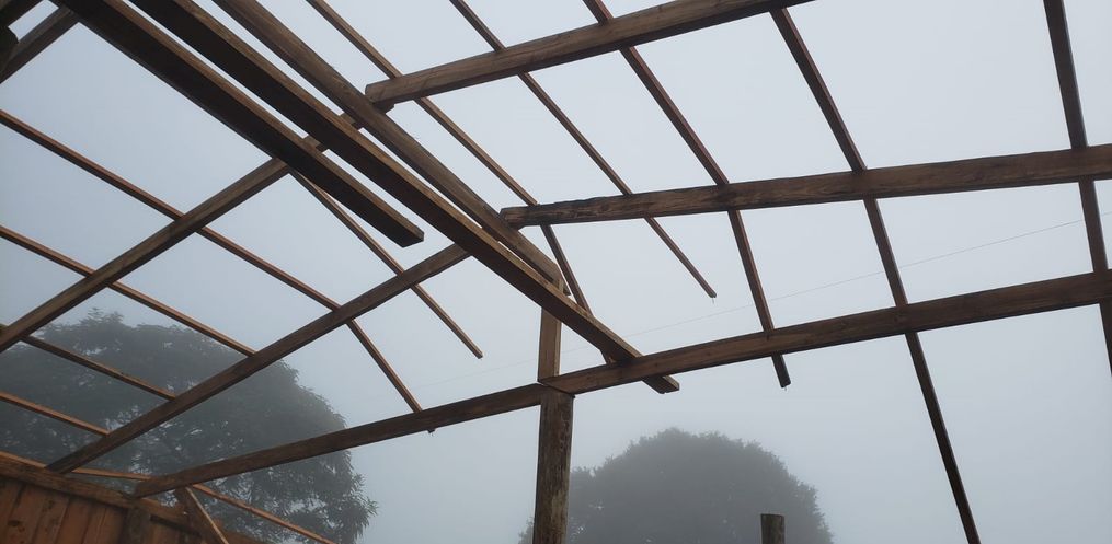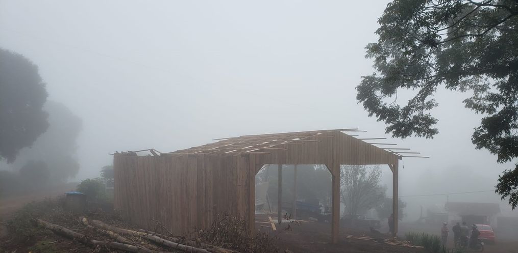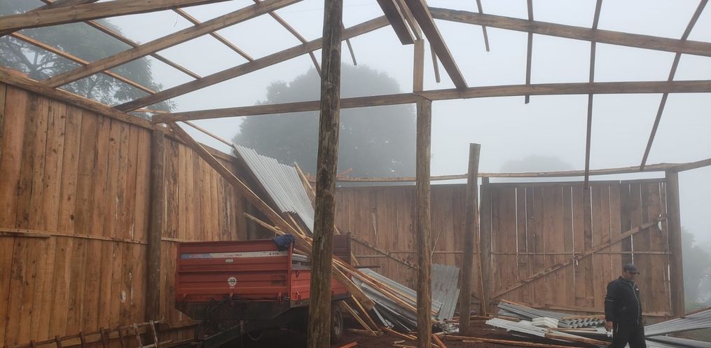 Duas pessoas ficaram feridas após o teto de um galpão desabar na manhã desta sexta-feira, 06, na Linha Santa Catarina, na divisa dos municípios de Iporã do Oeste e Descanso.