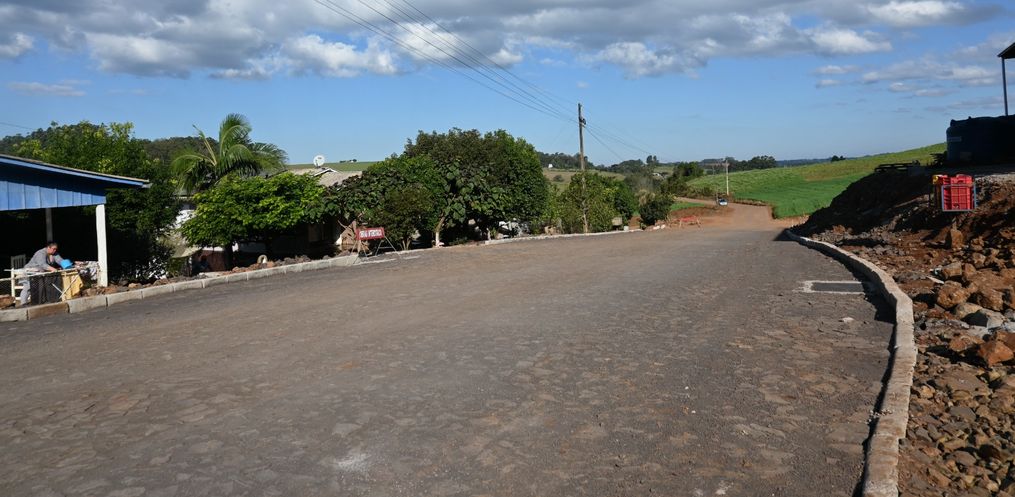 Antoceff frisa que a estrada para a Linha Gaúcha também já possui um trecho pavimentado com pedras irregulares e deve ser totalmente concluído nas próximas semanas. O local está liberado para o tráfico de veículos.