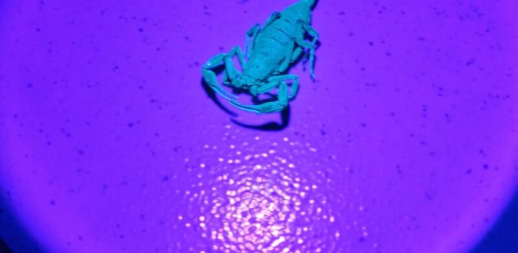 As buscas contaram com o uso de lanternas ultravioletas, que ajudam a localizar os escorpiões com mais facilidade, já que sob essa luz eles brilham em um tom verde neon, visível mesmo no escuro.