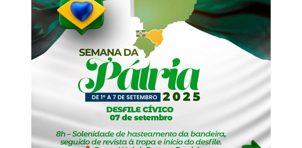 A programação inicia às 8h, com o hasteamento das bandeiras na Praça Walnir Bottaro Daniel, seguido da revista à tropa e o início do desfile, às 8h20, ao longo da Rua Duque de Caxias.