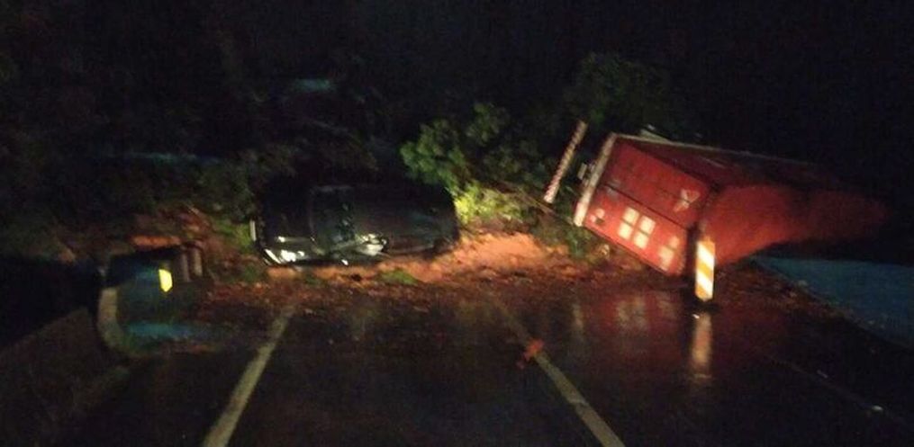 Imagens que circulam nas redes sociais mostram que veículos foram atingidos pelo deslizamento, porém, ainda não há informação oficial sobre vítimas.