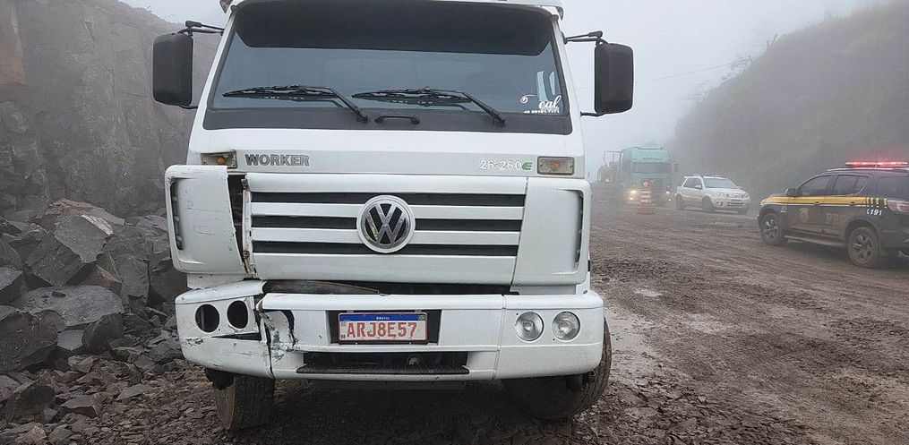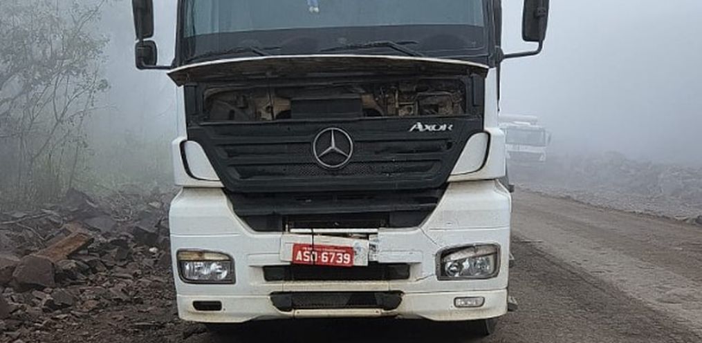 Um deslizamento de pedra causou um acidente entre dois caminhões na BR-163, nas proximidades do trevo de acesso ao município de Anchieta, no quilômetro 91, na manhã desta quarta-feira, 08.