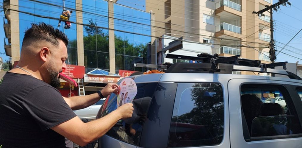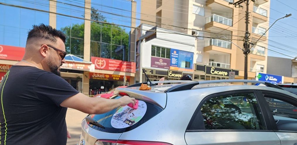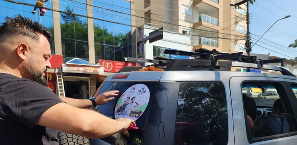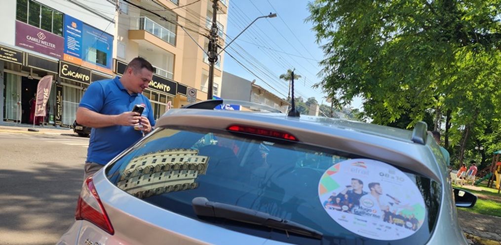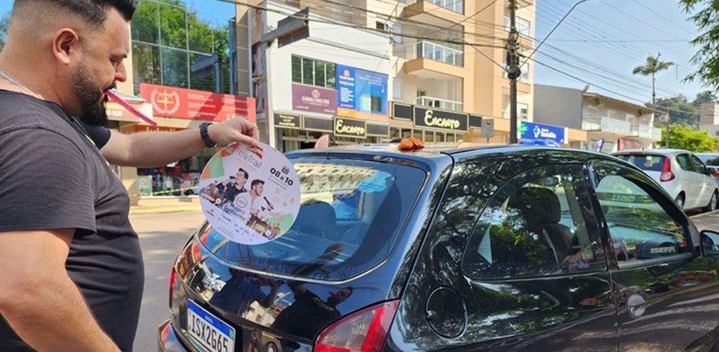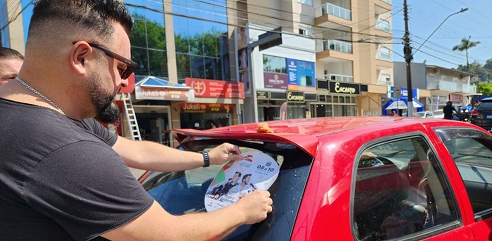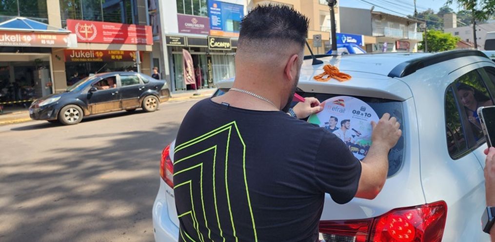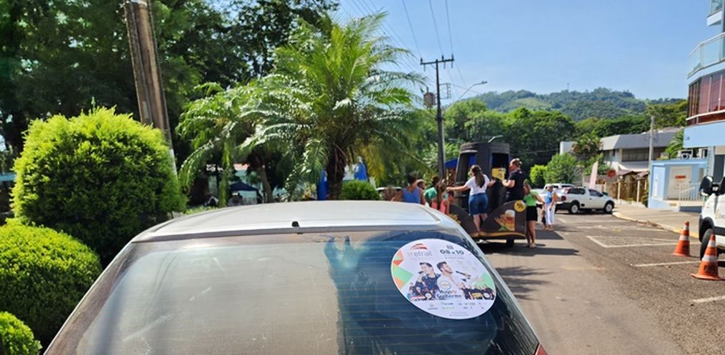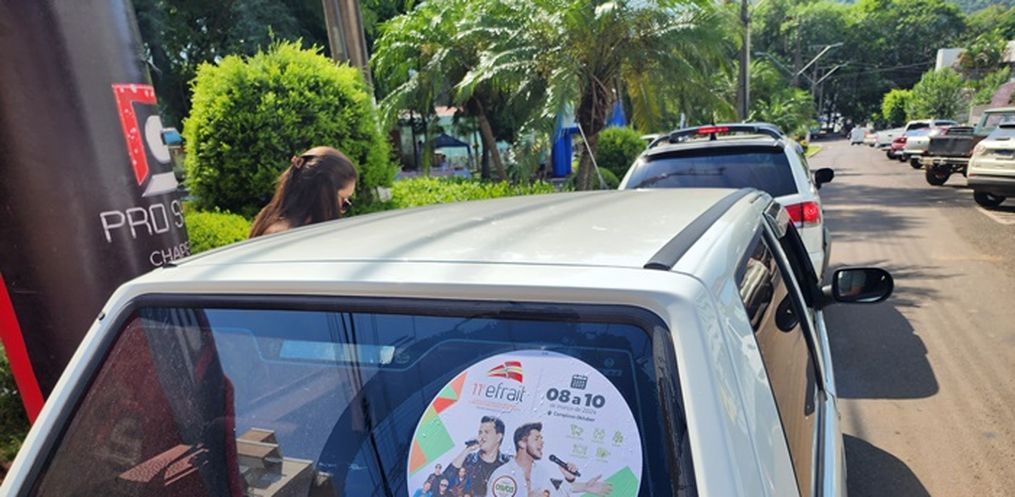 O adesivaço realizado pela Pro Shows Produções com a comissão organizadora da Efrait teve sorteio de ingressos para o principal show da Exposição Feira com Hugo e Guilherme e distribuição de chopp.