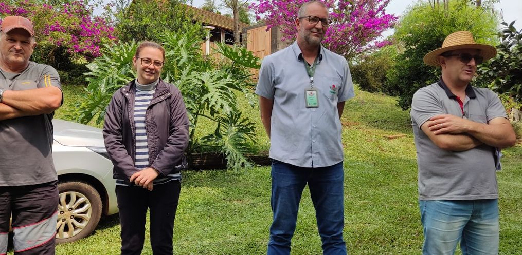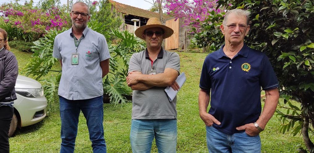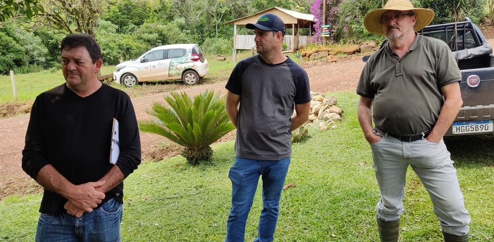 O Presidente da Epagri, Dirceu Leite, o Prefeito Claudio Júnior Weschenfelder, Vice-prefeito Noé Benetti, Sidinei Simon Gerente Regional da Epagri e o Secretário de Administração Júlio Della Flora acompanharam está tarde de campo.