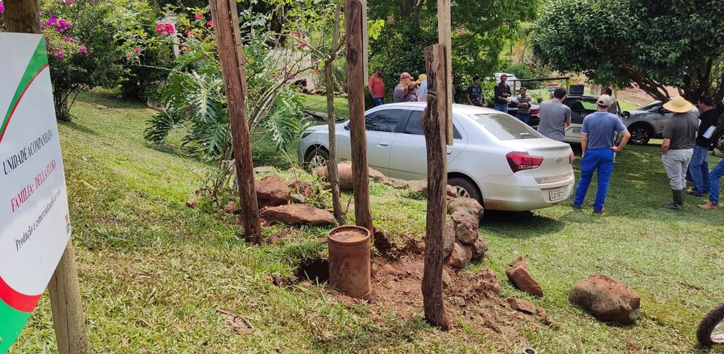 O trabalho de introduzir a cultura frutífera foi destaque na tarde desta quarta-feira, 18, na propriedade da Família Della Flora, na Linha Possatto em Guarujá do Sul.
