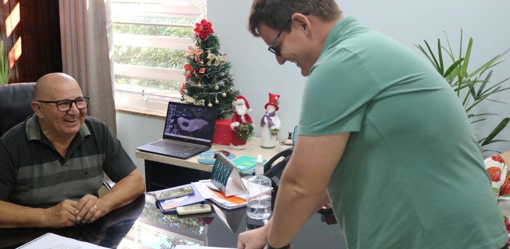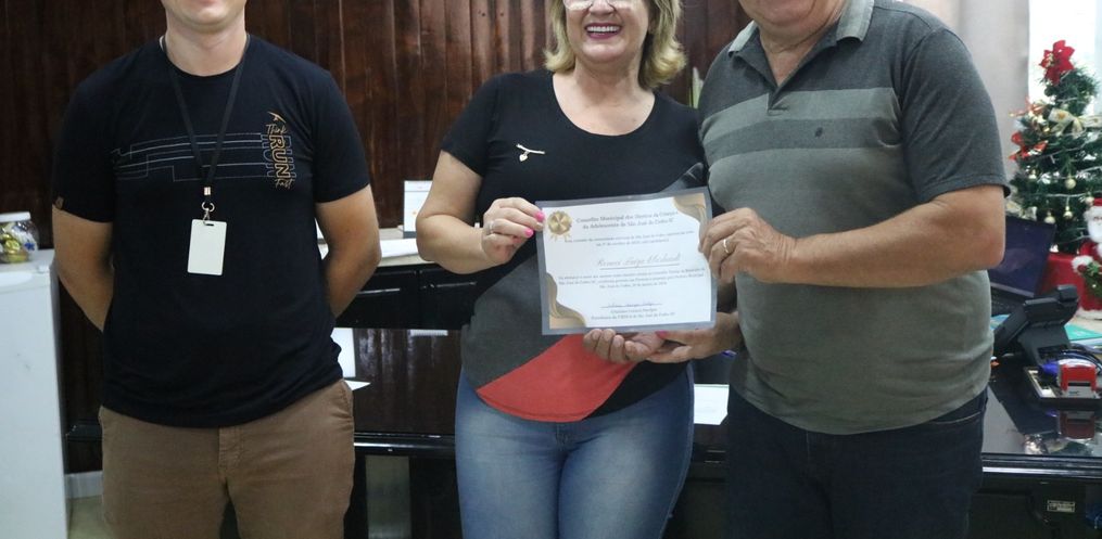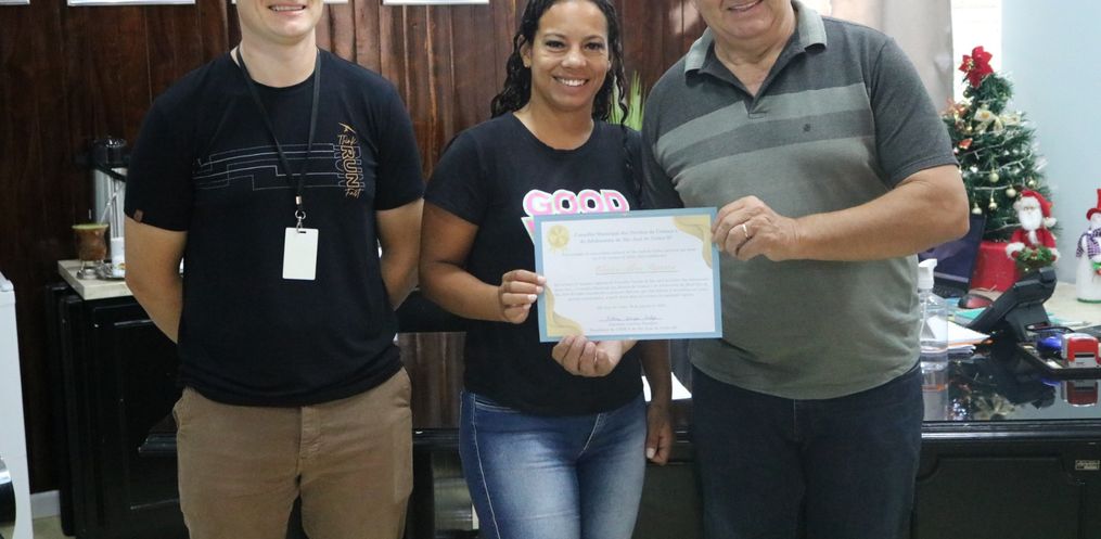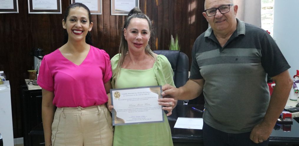 A cerimônia aconteceu no Gabinete do Prefeito e contou com a presença do Prefeito em Exercício, Elmar Hentz, a Secretária de Planejamento e Desenvolvimento Econômico, Kelly Figueiró e da Vice-presidente do Conselho Municipal dos Direitos da Criança e do Adolescente - CMDCA, Jana Mara Francozi, bem como de alguns membros do Conselho.