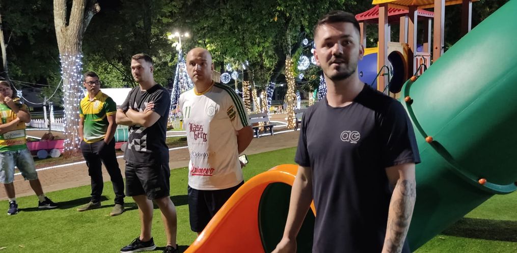 A apresentação foi realizada no campo de futebol sintético ao lado do Ginásio Lauté Weber, na noite desta quarta, 04.