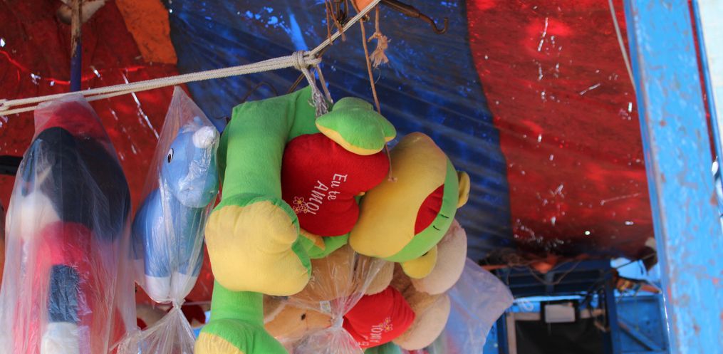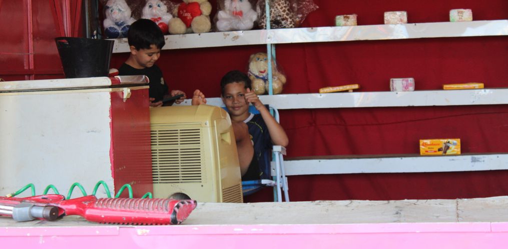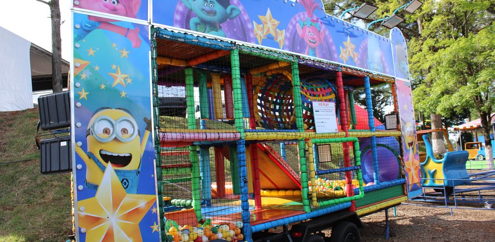 Localizado ao lado da entrada principal da feira, as famílias contam com diversos brinquedos para todas as idades.