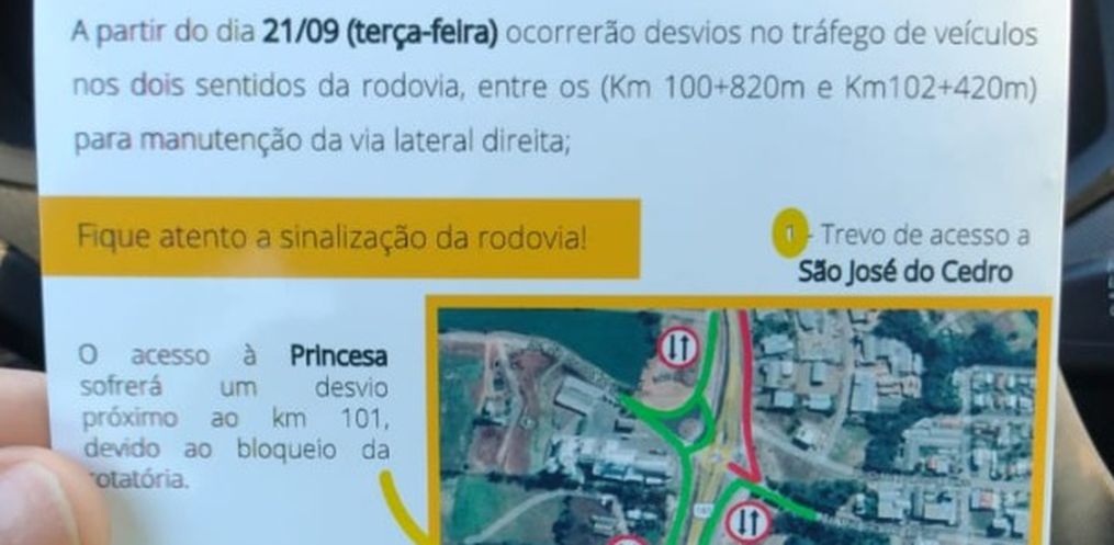 As alterações no trânsito no trecho da rodovia BR 163 em São José do Cedro serão para o início da construção do trevo do lado direito que dá acesso ao município. A informação é do supervisor regional do DNIT, Diego Fernando da Silva.