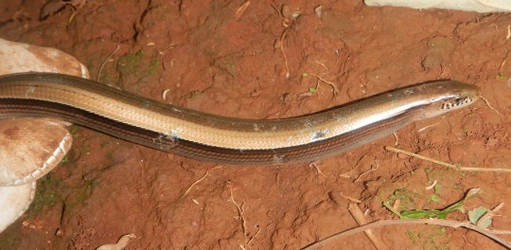 O DNIT resgatou duas cobras-de-vidro (Ophiodes sp.) durante as obras de restauração e adequação de capacidade da BR-163/SC, em Dionísio Cerqueira.