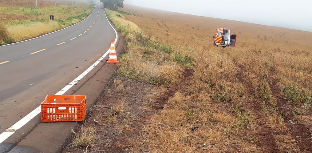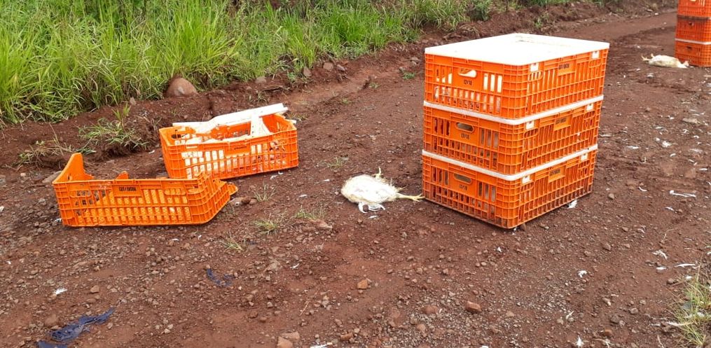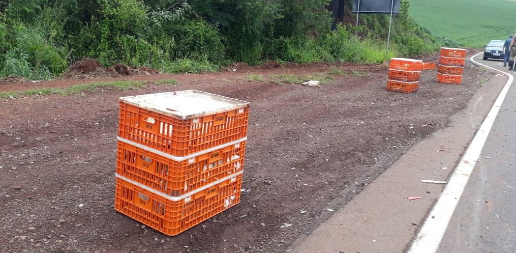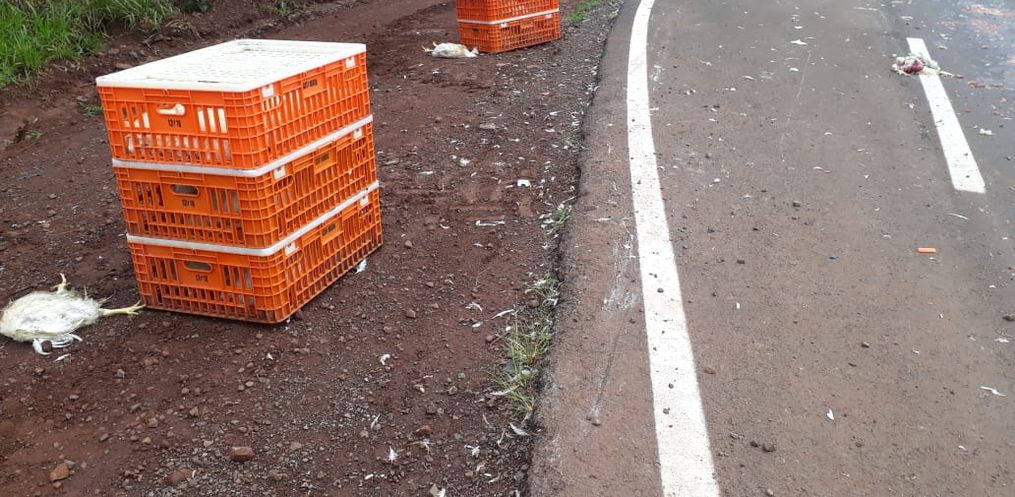 As caixas de frango ficaram espalhadas pela pista. O motorista do caminhão saiu do local sem prestar socorro e parou alguns quilômetros distante do acidente. Com a chegada da Polícia Militar Rodoviária, ele retornou para prestar esclarecimentos.