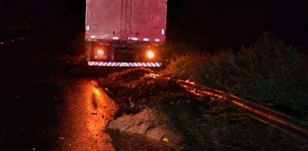 No local foi identificada duas vítimas fora do caminhão. Segundo o condutor faltou freio e os dois ocupantes pularam do caminhão ainda em movimento.