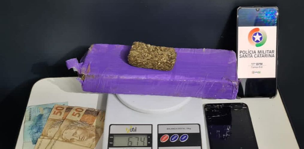 Além da maconha, que somou 674 gramas, R$200,00 em espécie e um celular foram apreendidos e entregues na Delegacia, juntamente com o veículo e os dois homens.