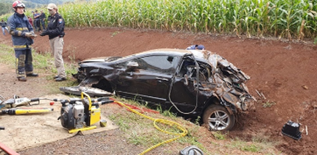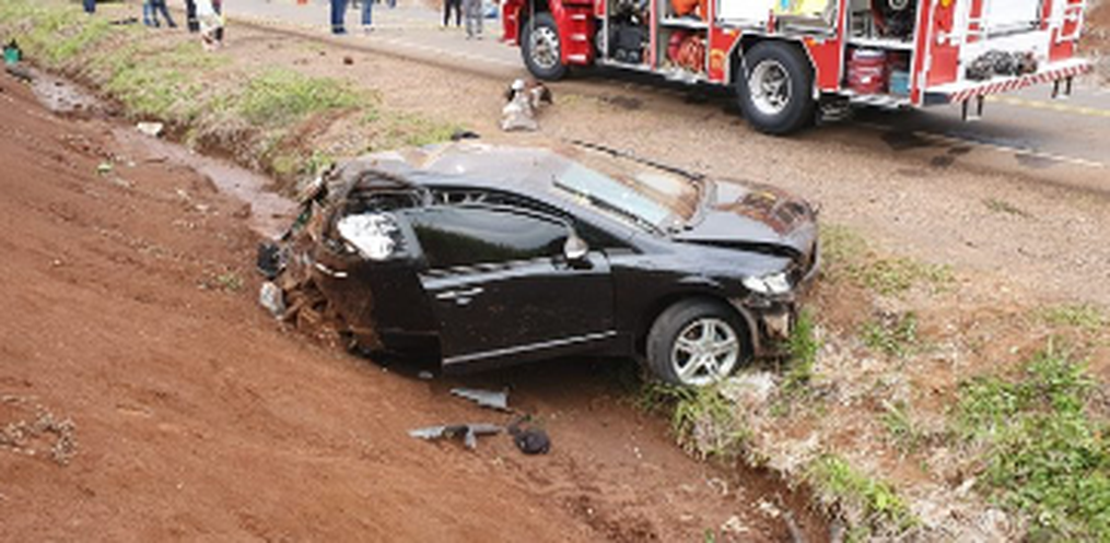 O acidente foi atendido pelo Samu e Corpo de Bombeiros. Os envolvidos estavam em um Civic emplacado em Francisco Beltrão/PR. O motorista teria perdido controle do carro, saído da pista e batido num barranco.