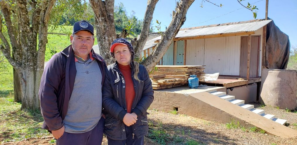 Eder e Claudiane Berwing e seus quatro filhos, moradores da linha Macaco Branco, Descanso, estão entre as famílias atingidas pelo tornado registrado no final do mês de junho.