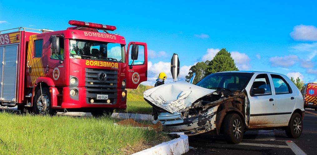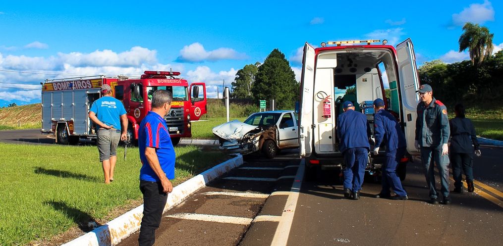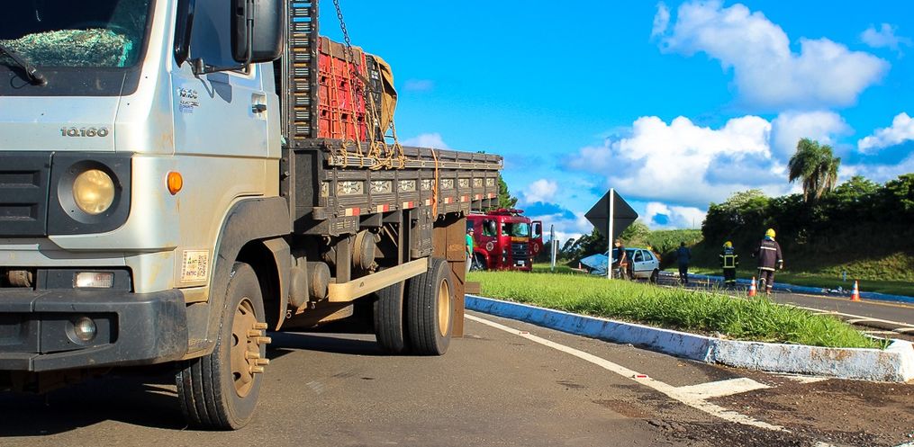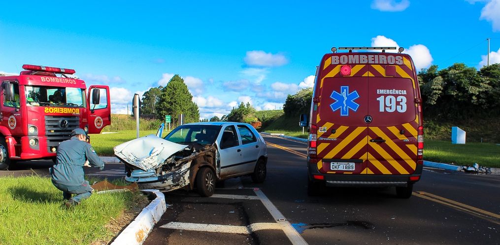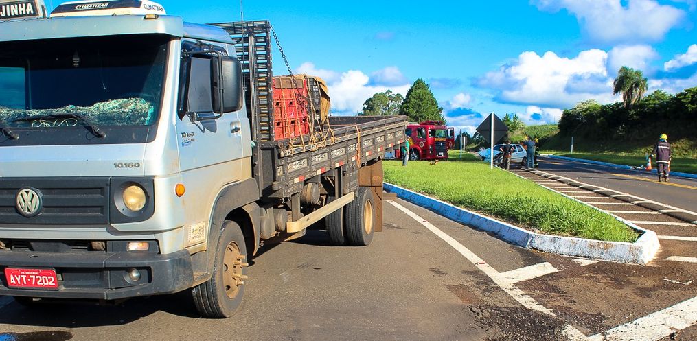 No local houve uma colisão lateral, envolvendo um Palio, placas de Dionísio Cerqueira e um caminhão de Umuarama/PR.