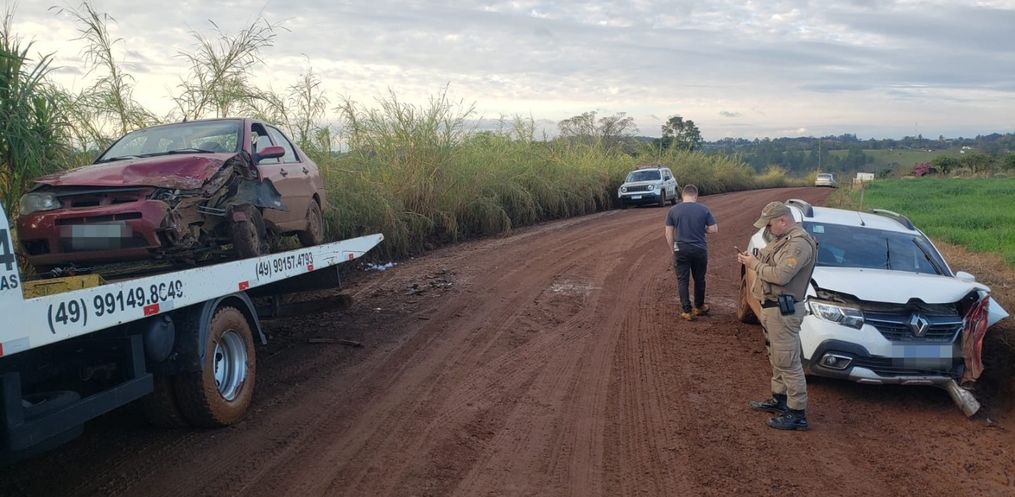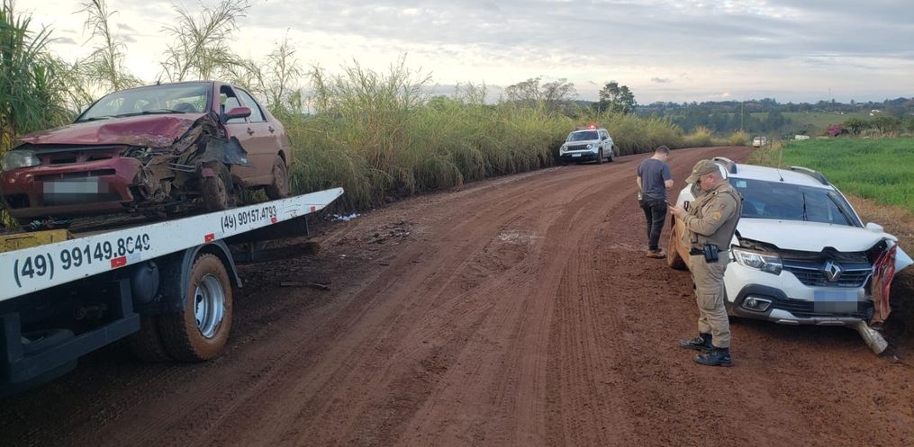 Duas pessoas ficaram feridas em uma colisão entre dois veículos registrada por volta das 16h30 desta sexta-feira, 28, em Linha Pitangueira, no interior de Tunápolis. O acidente envolveu um carro Fiat/Siena com placas de Itapiranga e um Renault/Sandero com placas Mercosul.