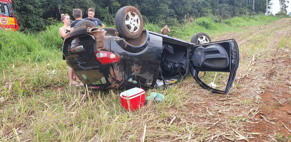 Uma saída de pista seguida de capotamento de um veículo Ka deixou duas pessoas feridas na tarde deste domingo, 27, por volta das 17h. A ocorrência foi registrada na Linha São Roque, interior de São José do Cedro.
