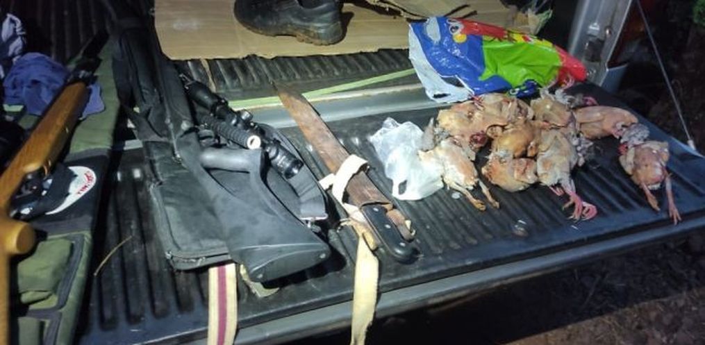 Conforme informações da PMA, foram encontrados com os dois homens, petrechos de caça, armas de fogo e 13 aves abatidas. Um dos homens estava com uma arma de calibre 22 sem registro, além de diversos acessórios como silenciador e luneta. A Polícia Militar Ambiental de Fronteira de SMOeste conduziu ambos para a delegacia de Polícia para os devidos procedimentos cabíveis.
