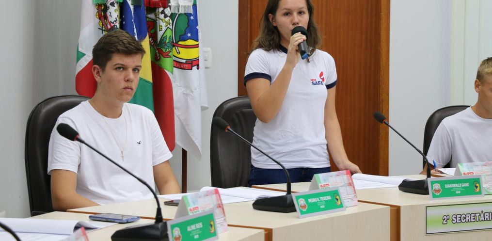 Na reunião desta quarta-feira, 26, foi definida a mesa diretora da Câmara Mirim. Com nove votos, a aluna do Colégio Safa Sagrada Família, Djanikerlle Milena Gaike, foi eleita presidente, Luiza Schuck Rambo, vice-presidente, Maiara Bisollo Carlson, primeira secretária e Aline Reis, segunda secretária