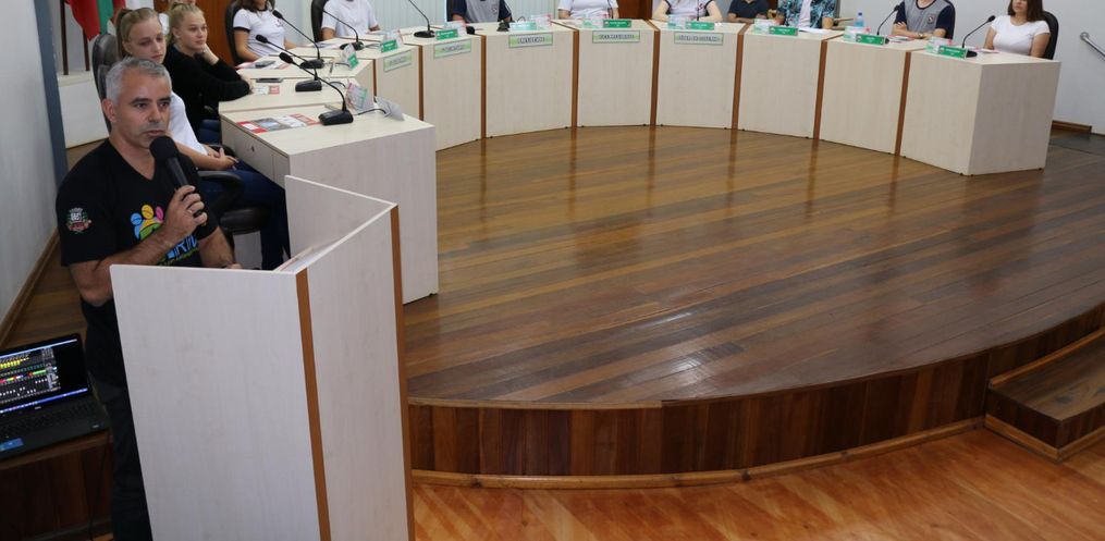 Projeto Vereador Mirim de Itapiranga realiza primeira sessão do ano. São 11 alunos do ensino médio de escolas estaduais e particulares de Itapiranga.