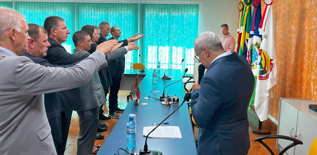 Além deles, os nove vereadores também tomaram posse nesta manhã, sendo eles, Neir Mittmann, Joacir Raldi, Nilmar Prezzi, Neura Deres, Vanderlei Pelozato, Genésio Trevisan, Rafael Balensiefer, Maximino da Silva Dias e Valmir Marangon.