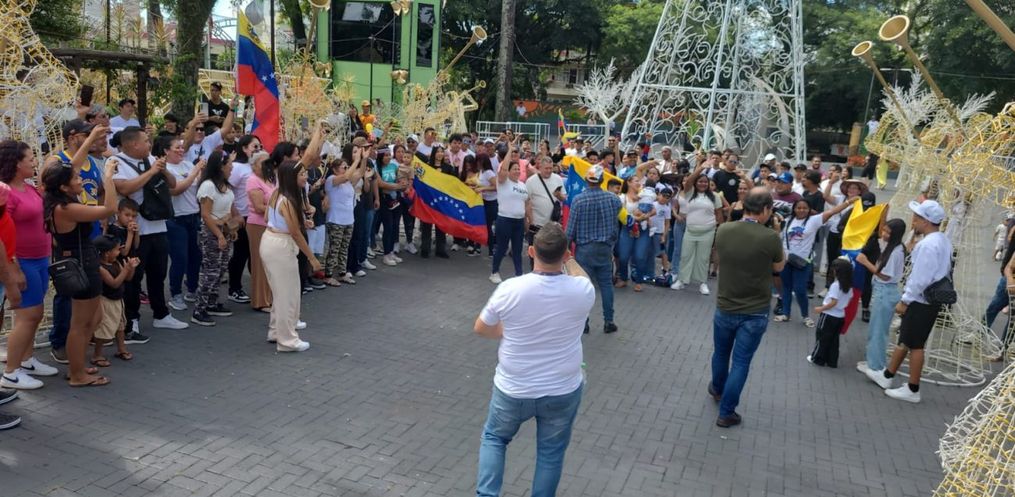 O grupo começou a concentração às 15h. Adultos, jovens e crianças cantaram e dançaram enrolados em bandeiras da Venezuela. O município é o que tem a maior concentração de imigrantes venezuelanos de Santa Catarina.