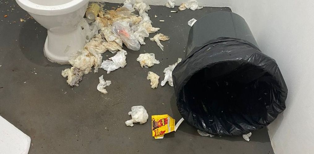 Na manhã deste sábado, 30, as equipes responsáveis pela limpeza encontraram um cenário de destruição nos banheiros e margens do Rio Uruguai. Lixo na barranca do Rio Uruguai e até lixeira jogada na direção da água. Diversas latas de bebidas alcoólicas e outros materiais fazem parte do cenário.