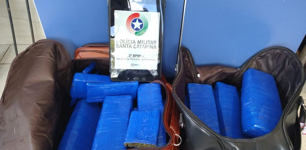 Em revista as bagagens, os policiais encontraram 32,422 Kg de maconha.