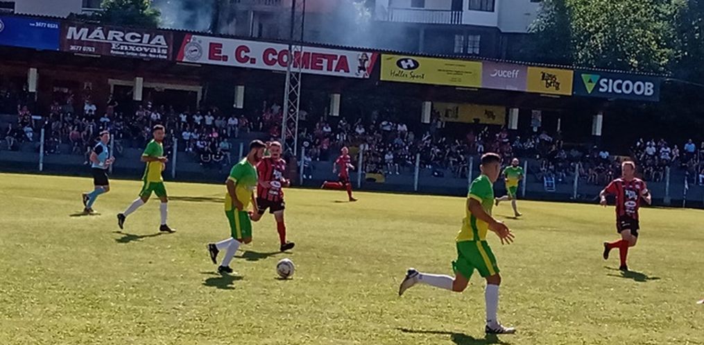 O Aliança teve a iniciativa aos 16 minutos, quando Eder na cara do gol chutou em cima do goleiro Fabiano que salvou o Cometa de levar o gol de abertura. Porém, o Cometa aos poucos equilibrou a partida e fez 4 x 0 no primeiro tempo com Edi, Motor, Giovan e Thiaguinho Butzke.