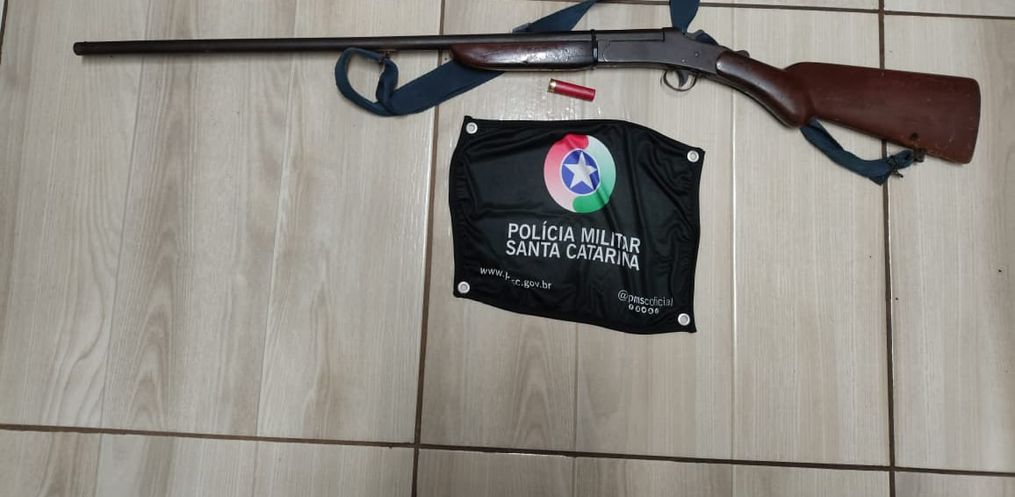 De acordo com a PM, ao chegar ao local, os policiais encontraram o suspeito próximo a um galpão, ao lado da residência da família. No local, foi localizada uma espingarda calibre 28 com numeração suprimida e um cartucho intacto. O filho do casal informou que a arma pertencia ao pai.