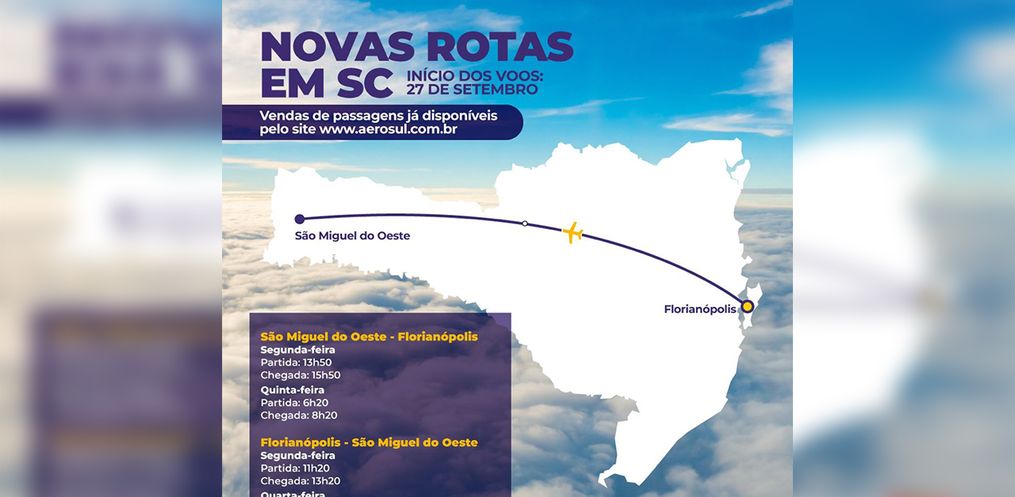 A empresa Aerosul confirmou, nesta terça-feira, 21, que os voos entre São Miguel do Oeste e Florianópolis serão diretos, sem nenhuma escala.