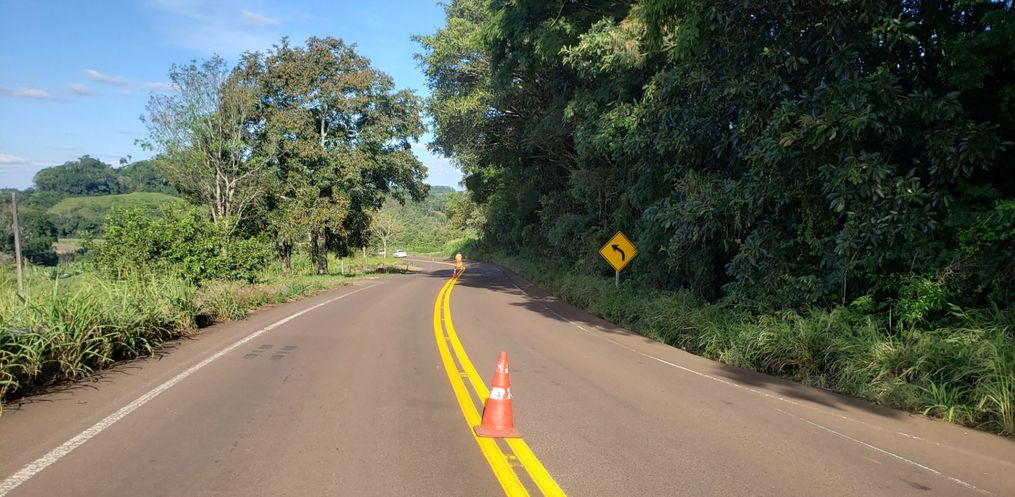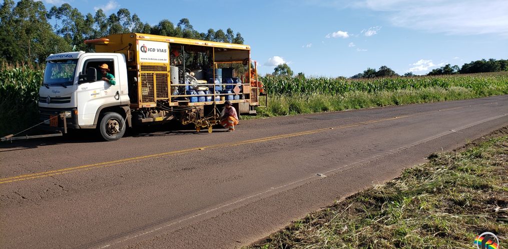 A rodovia SC-386, trecho entre os municípios de Iporã do Oeste e Mondai está recebendo nesta semana a pintura das faixas de sinalização e demarcação da pista, no trajeto de aproximadamente 30 quilômetros.