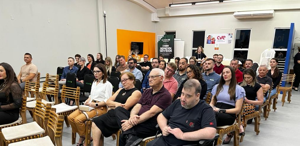 Cerca de 100 pessoas participaram na noite de sexta-feira, 24, do 1º Talk Empresarial – Construindo Gigantes: lições de liderança, crise e futuro, realizado pelo Núcleo Empresarial da Acismo, no coworking da entidade, em São Miguel do Oeste.