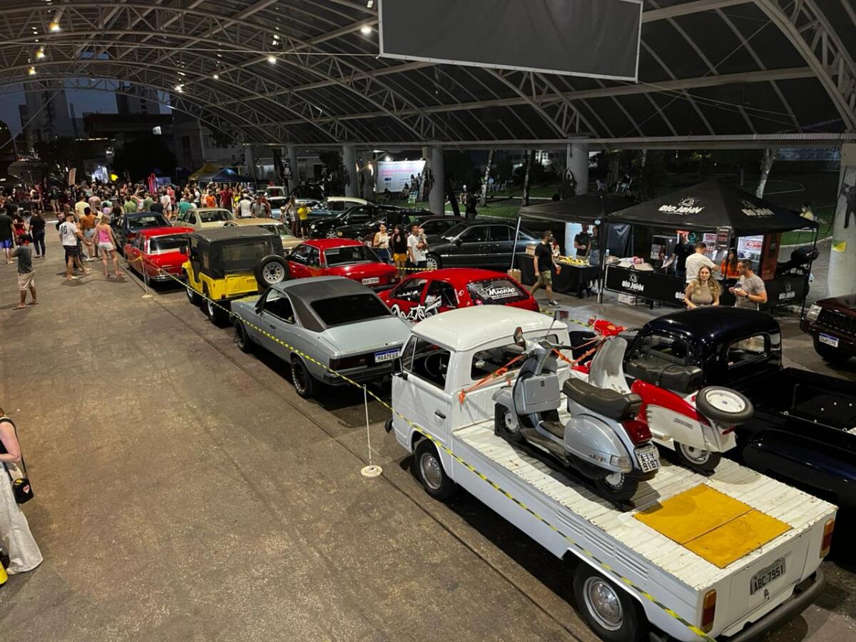 Encontro de carros antigos reúne centenas de veículos na Praça Walnir Bottaro Daniel, em SMO