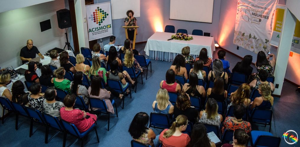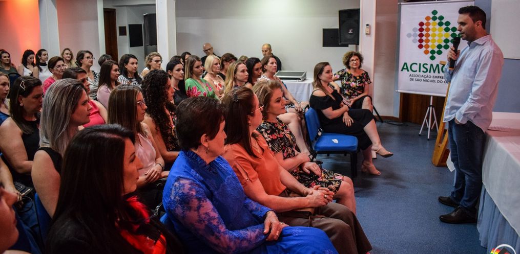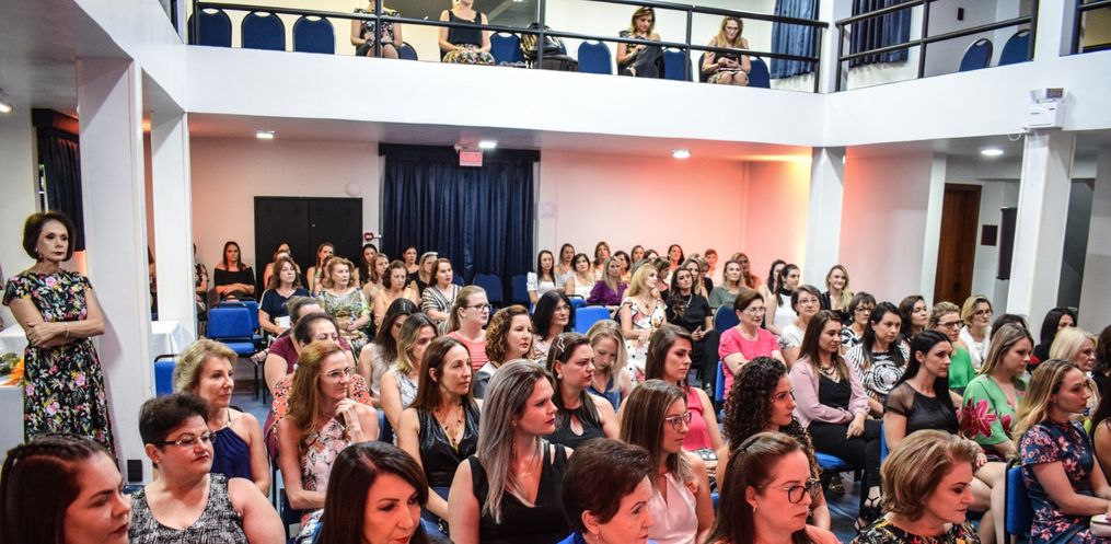 De casa cheia, centenas de mulheres participaram, na noite de quarta-feira, 11, do Encontro da Mulher Empresária – Mulheres que inspiram mulheres, organizado pelo Núcleo das Mulheres Empresárias da Associação Empresarial de São Miguel do Oeste (Acismo), realizado no Salão Azul do Hotel Solaris.