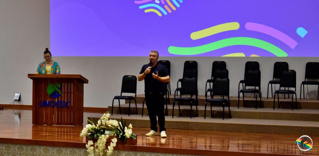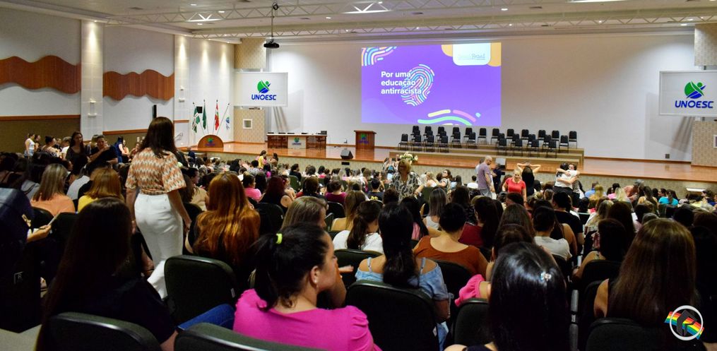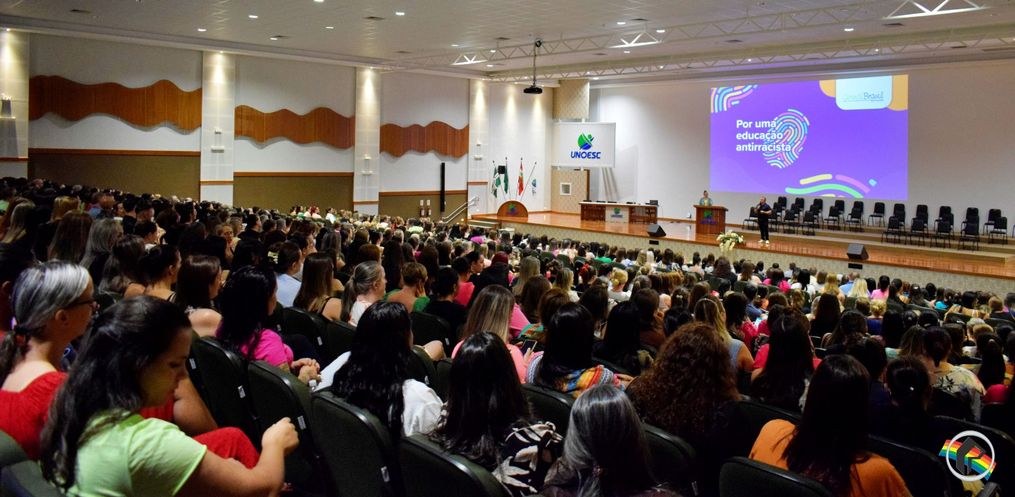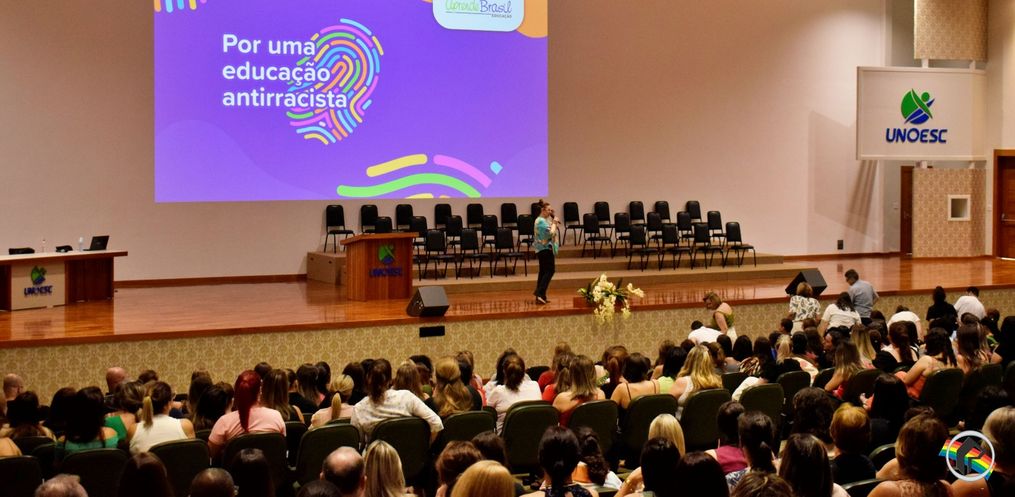 A secretaria de Educação de São Miguel do Oeste realizou, na manhã desta quinta-feira, 01, o evento de abertura do ano letivo de 2024 para a equipe de trabalho da rede municipal de ensino. O encontro no centro cultural da Unoesc reuniu cerca de 700 profissionais, entre diretores, professores, auxiliares e equipe administração da secretaria e das escolas. A palestra principal do encontro foi sobre “Educação antirracista”. O assunto foi abordado pela professora de educação física, Pedagoga, mestre em educação e pesquisadora das relações étnico-raciais, raciais, CÁTIA COSTA. A palestra tratou da compreensão das leis que tornam obrigatório o ensino da história da África e dos africanos, a luta dos negros e dos povos indígenas no Brasil, a cultura negra e indígena. Ela abordou também conceitos como privilégio, interseccionalidade e autodeclaração.