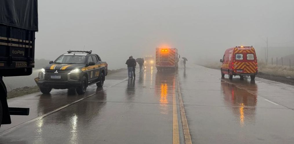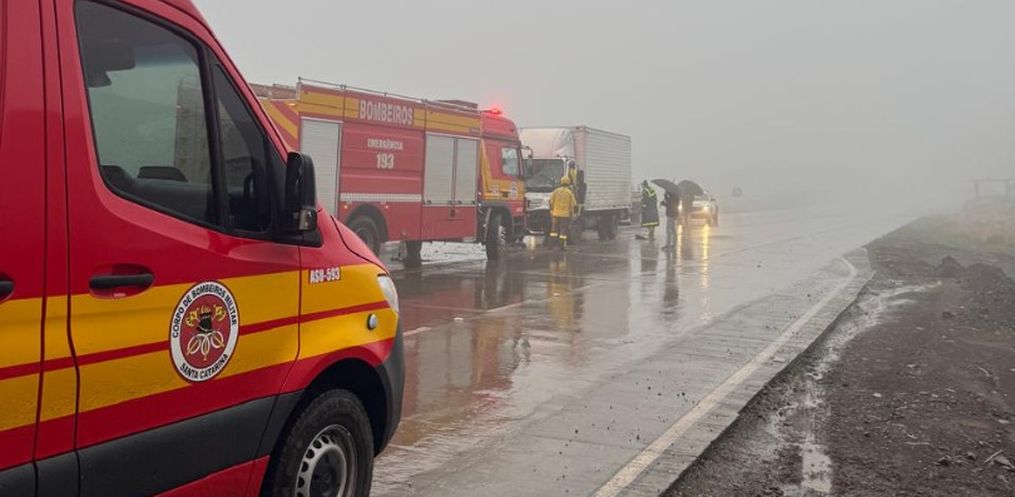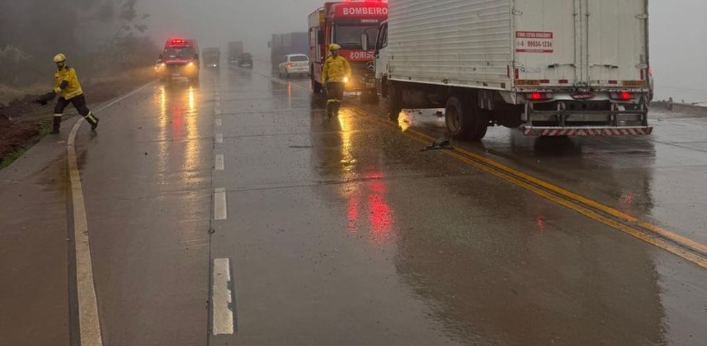 Na manhã desta quinta-feira, 24, por volta das 8h20, um engavetamento envolvendo dois caminhões e um carro foi registrado na BR-163, próximo à indústria Gran Mestri, na Linha Caravaggio, interior de Guaraciaba.