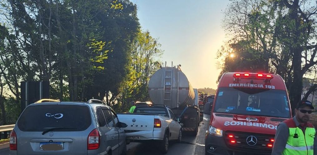 Um engavetamento envolvendo cinco veículos foi registrado no fim da tarde de sexta-feira 29, no trevo principal de Nova Erechim, na BR-282.