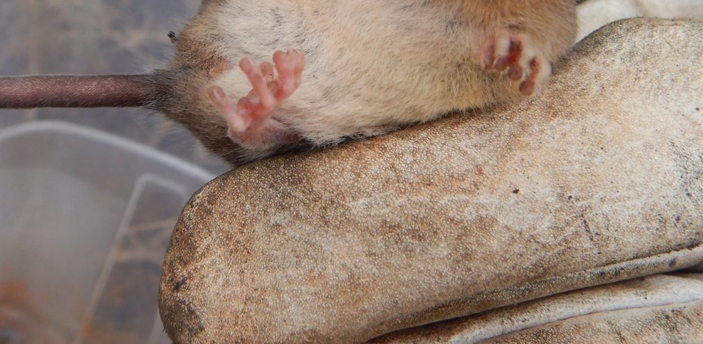 O DNIT resgatou uma cuíca-graciosa (Gracilinanus microtarsus) durante as obras de adequação de capacidade da BR-163/SC, em Dionísio Cerqueira.
