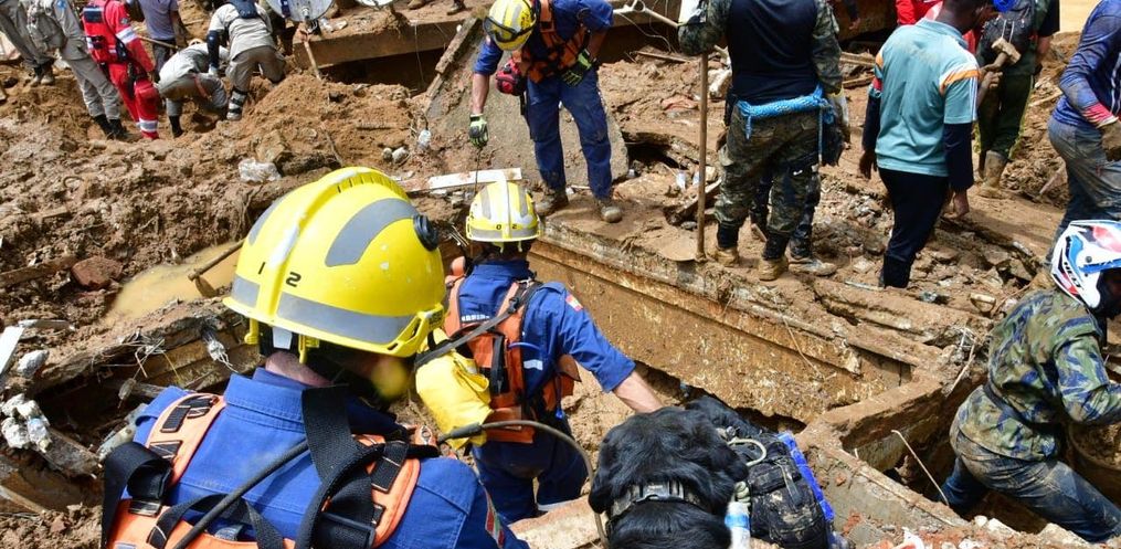 Nesta terça, a equipe do CBMSC foi fundamental para o apontamento dos locais de mais três vítimas, retiradas dos escombros.