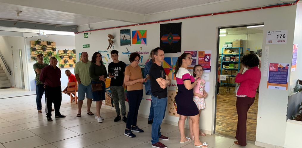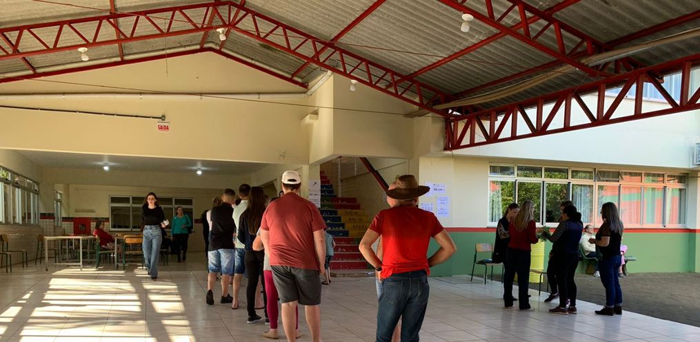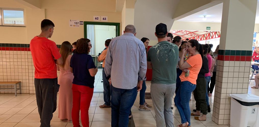 Em São Miguel do Oeste, na Escola Jaldyr Bhering Faustino da Silva do bairro São Gotardo eleitores estão ficando entre 1h30 e 2h na fila para a votação.