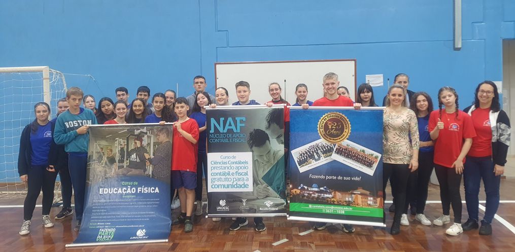 Os estudantes do 9º Ano das escolas municipais Marechal Artur da Costa e Silva, do Bairro Salete, e Juscelino Kubitschek de Oliveira, do Bairro Estrela, de São Miguel do Oeste, participaram na manhã desta quarta-feira (4), da etapa final da Gincana de Educação Fiscal, que faz parte do Projeto de Educação Fiscal e Cidadania, realizado pela Unoesc, Cursos de Ciências Contábeis e Educação Física, Núcleo Fiscal e Contábil (NAF), em parceria com a Receita Federal e Secretaria Municipal de Educação.