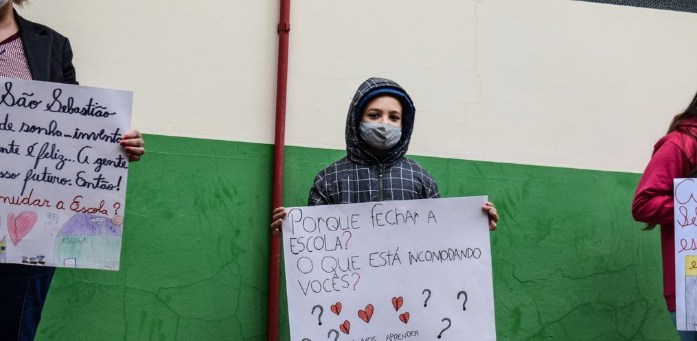 A mãe reforçou que a os pais e também a comunidade não querem a municipalização, mas querem que as crianças continuem na escola do São Sebastião, porque os professores tem estratégia educacional, tem a solidariedade com os alunos, coisa que segundo ela não se vê na rede municipal.