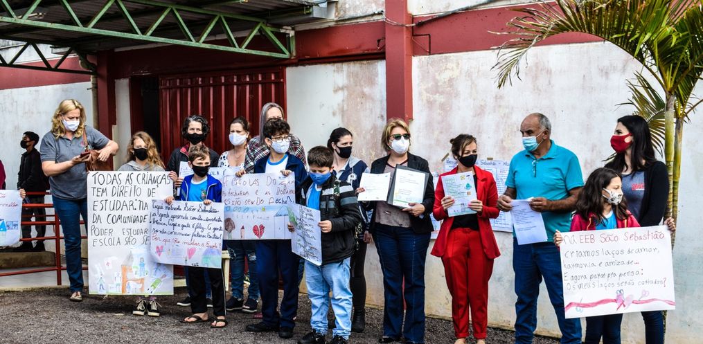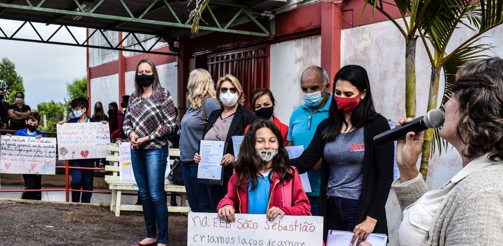 Em um ato para demonstrar a total insatisfação com a municipalização, A Escola de Educação Básica do bairro São Sebastião, em São Miguel do Oeste, promoveu nesta sexta-feira, 19, o “Abraço Solidário”. O ato teve a participação dos pais, alunos, professores, comunidade em geral e também autoridades.