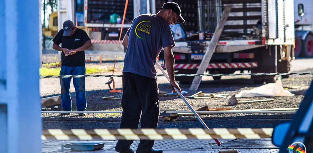 Profissionais estão trabalhando para deixar tudo pronto para a feira, que começa na sexta-feira da semana que vem, dia 11 e se estende até terça-feira, dia 15.