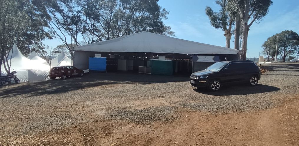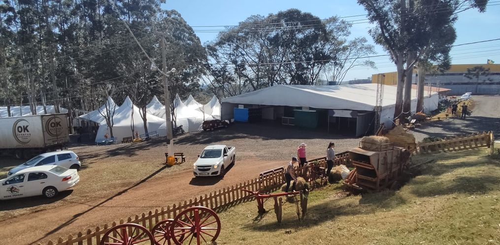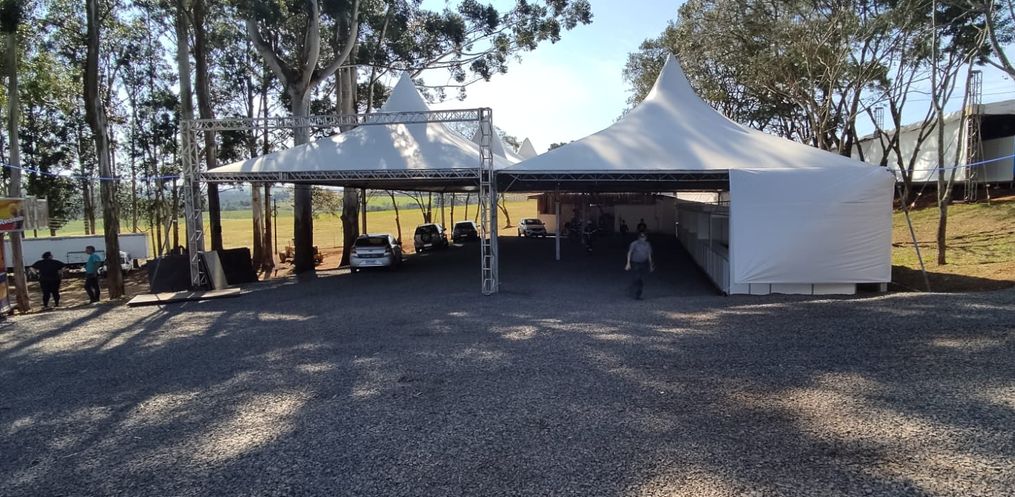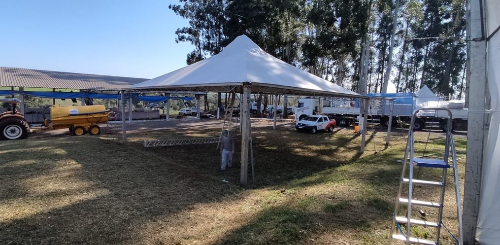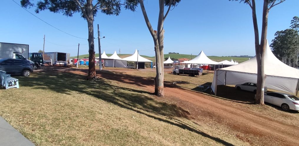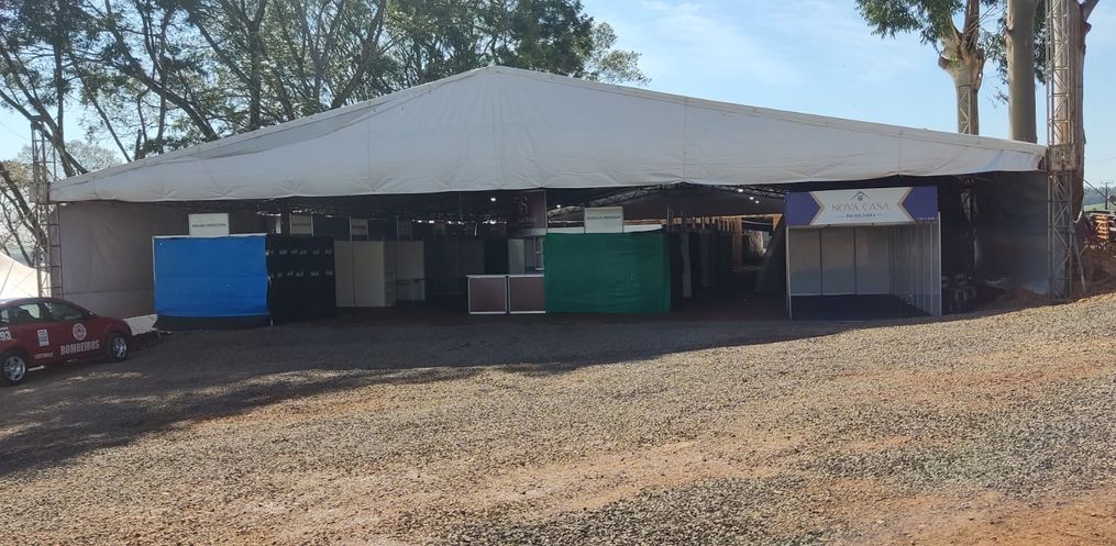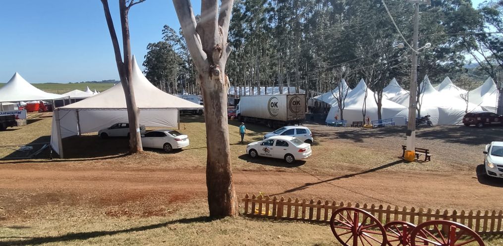 Durante essa última semana estão sendo montados os estandes para os expositores externos, e os mesmos já estão no parque para poder montar os espaços para expor os seus produtos.