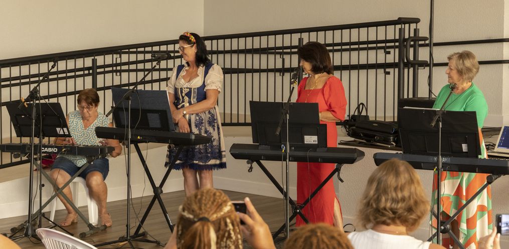 Para encerrar essa tarde marcante, um grupo de mulheres se apresentou musicalmente, trazendo ainda mais emoção ao evento. A Associação Comercial fez a entrega de lembranças às participantes, e o encontro foi finalizado com um delicioso coffee break, proporcionando momentos de troca e celebração.