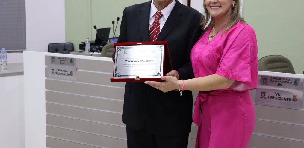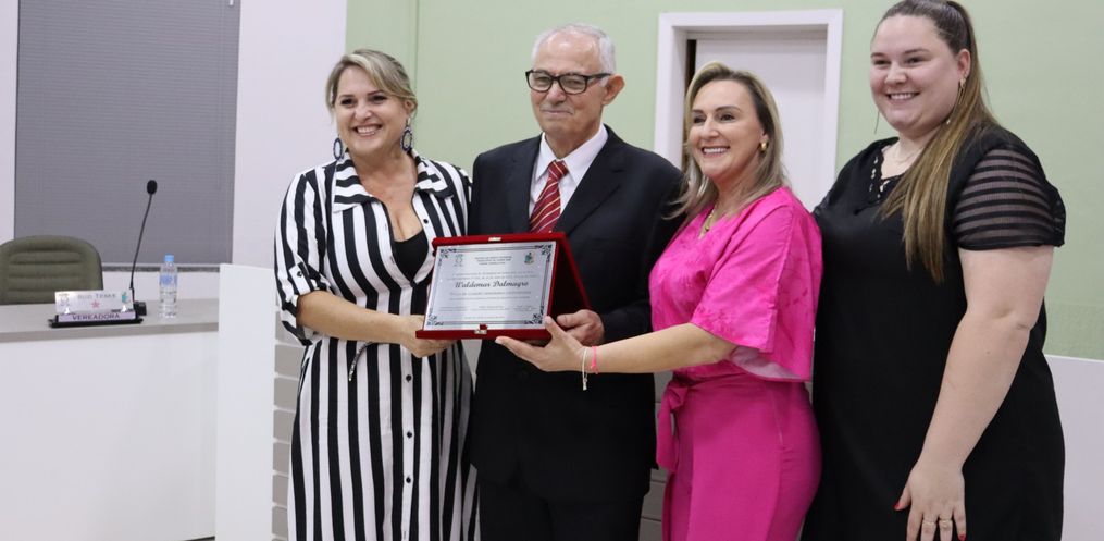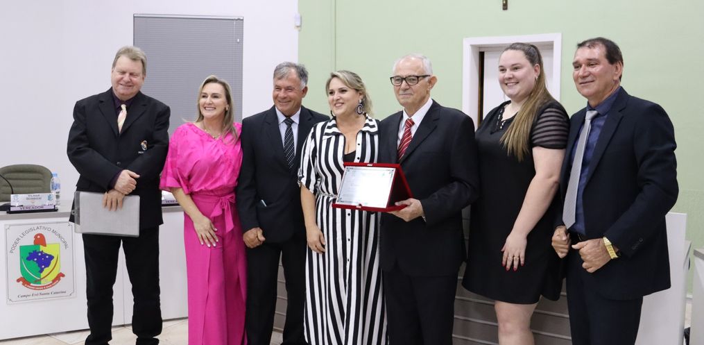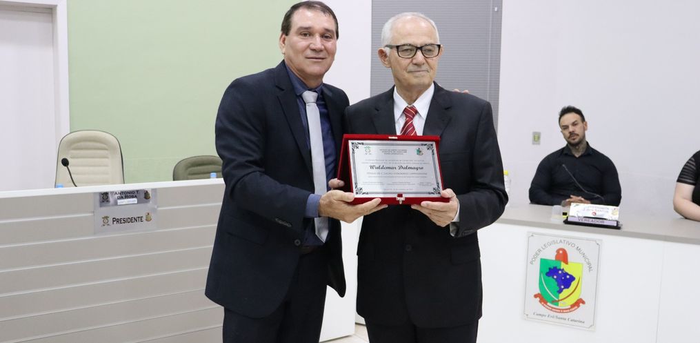 A sessão solene aconteceu na noite desta quinta-feira, 30, na Câmara de Vereadores de Campo Erê, para a entrega de Título de Cidadão Honorário para Valdemar Dalmagro.