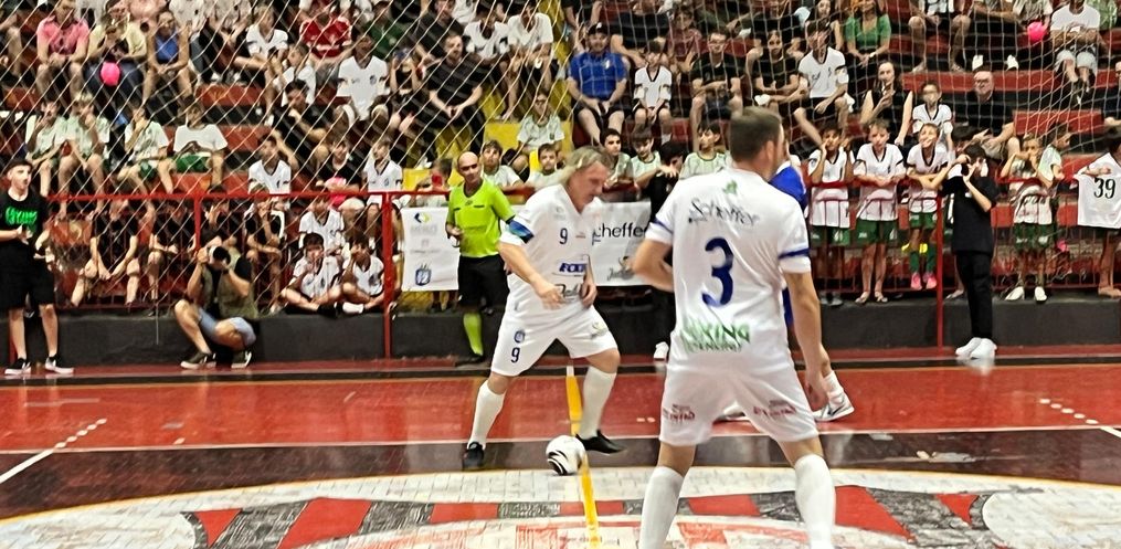 Falcão, multicampeão e considerado por muitos o maior jogador de futsal de todos os tempos, foi o grande destaque da noite. Mesmo aposentado desde 2018, o camisa 12 mostrou que o talento segue intacto. Do outro lado, Sotilli, conhecido pelo faro de gol e bom humor nas redes sociais, também deixou sua marca.